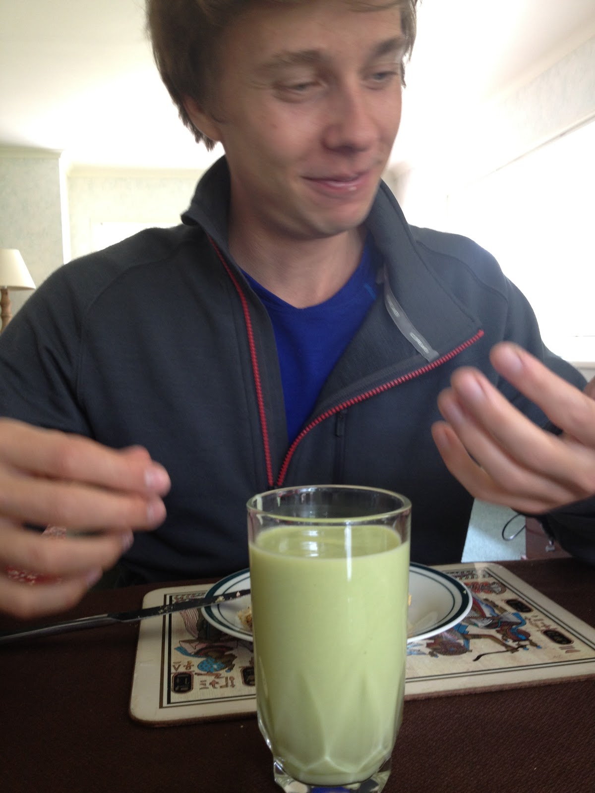 De verkar inte äta så mycket här. Vi har lite dåligt samvete över att vi äter och äter och äter som värsta Hobbitarna. Jämt och mycket. Vi tar typ slut på allting för dem, flera gånger om (de måste vara helt förundrade över vår äggkonsumtion, tur att vi hittade en jättestor äggkartong i en kundvagn utanför en mataffär för nån vecka sen). Första dagen blev vi långa i ansiktet när Kathryn sa att det fanns bananer om vi ville ha lunch. Det blev det och flingor, men sen har vi börjat fixa saker själva (läs värma rester, steka ägg och rosta mackor). Men de äter ofta mackor, idag åt vi jättegoda fruktscones och avokadosmoothie á la Linnéa. Vi saknar dock osthyvel och konservöppnare när vi lever runt i köket och skapar fantastiska matkreationer (hmmm). Hur överlever de utan egentligen????